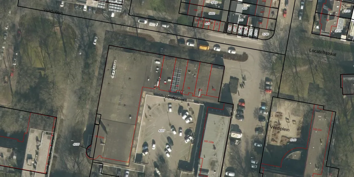 Verdiplein 98 is gelegen op kadastraal perceel TBG01S4107. Deze kadastrale aanduiding is uniek en wordt gebruikt door het Kadaster om eigendomsrechten en andere zakelijke rechten vast te leggen. Het perceel maakt onderdeel uit van de kadastrale gemeente Tilburg.