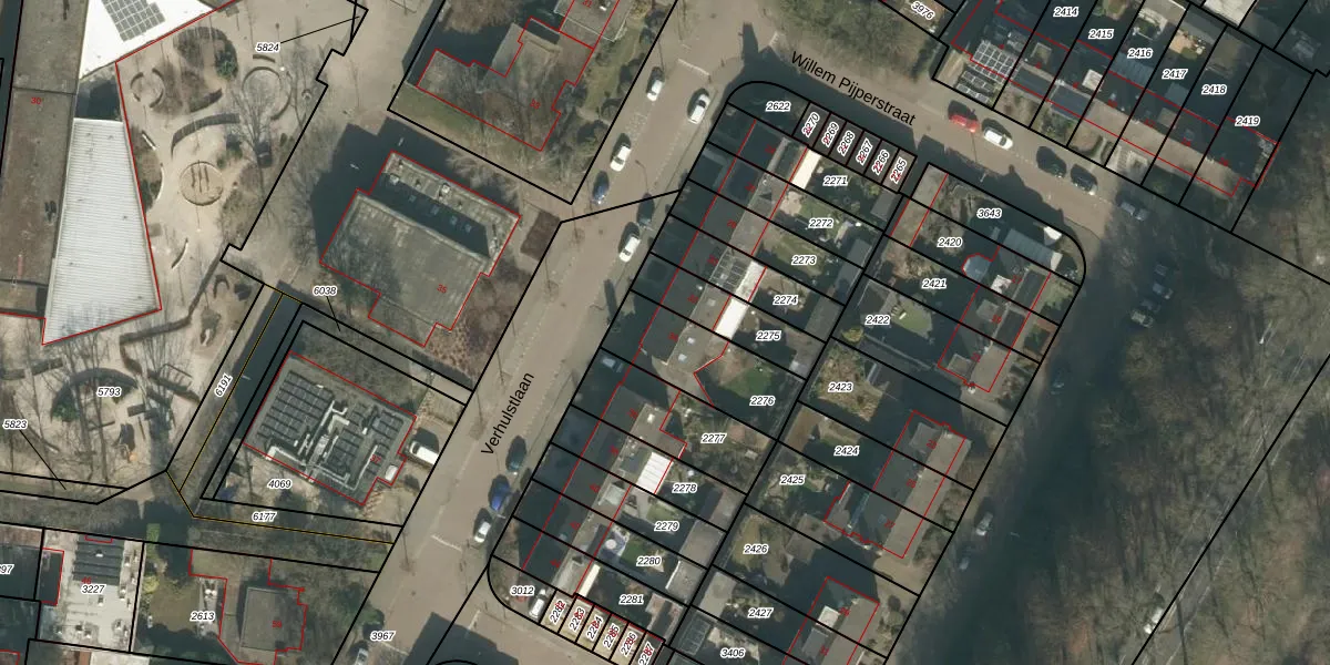 Verhulstlaan 34 is gelegen op kadastraal perceel TBG01S2276. Deze kadastrale aanduiding is uniek en wordt gebruikt door het Kadaster om eigendomsrechten en andere zakelijke rechten vast te leggen. Het perceel maakt onderdeel uit van de kadastrale gemeente Tilburg.