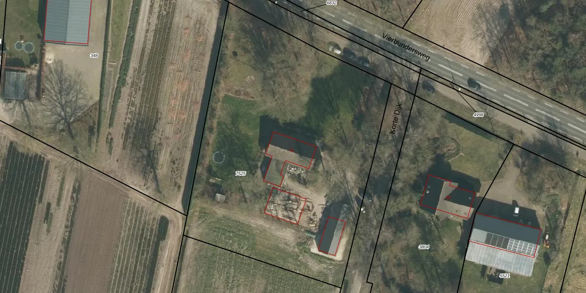 Het perceel waarop Vierbundersweg 78 staat heeft een oppervlakte van 4435 m². Dit is een zeer groot perceel. De perceeloppervlakte wordt geregistreerd door het Kadaster. Gedetailleerde informatie over de maten van dit perceel kunt u vinden in het rapport Kadastrale kaart met maatvoering van Vierbundersweg 78.