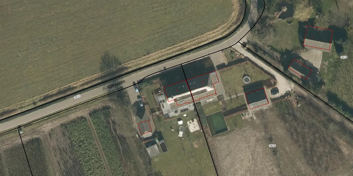Het perceel waarop Vijfhuizen 5 staat heeft een oppervlakte van 1,3 ha. Dit is een zeer groot perceel. De perceeloppervlakte wordt geregistreerd door het Kadaster. Gedetailleerde informatie over de maten van dit perceel kunt u vinden in het rapport Kadastrale kaart met maatvoering van Vijfhuizen 5.
