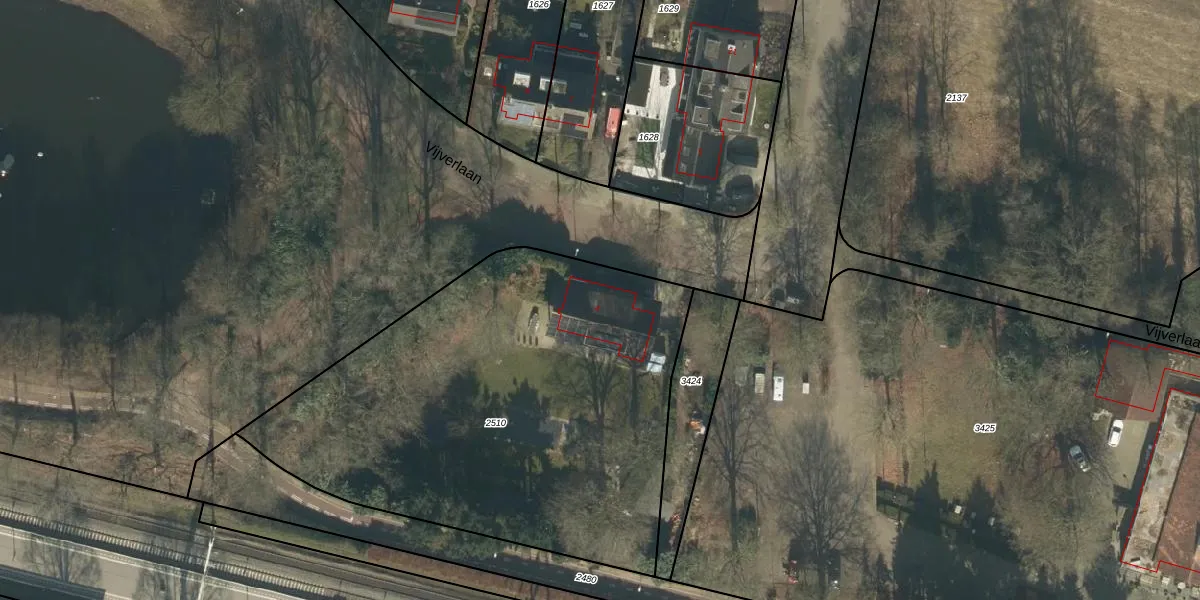 Het perceel waarop Vijverlaan 4 staat heeft een oppervlakte van 2565 m². Dit is een zeer groot perceel. De perceeloppervlakte wordt geregistreerd door het Kadaster. Gedetailleerde informatie over de maten van dit perceel kunt u vinden in het rapport Kadastrale kaart met maatvoering van Vijverlaan 4.