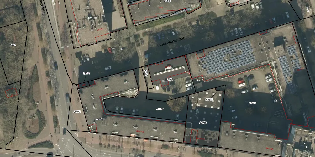 Het perceel waarop Vincentiusstraat 102 staat heeft een oppervlakte van 658 m². Dit is een groot perceel. De perceeloppervlakte wordt geregistreerd door het Kadaster. Gedetailleerde informatie over de maten van dit perceel kunt u vinden in het rapport Kadastrale kaart met maatvoering van Vincentiusstraat 102.