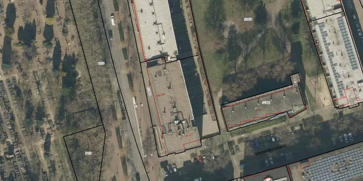 Het perceel waarop Vincentiusstraat 121 staat heeft een oppervlakte van 1730 m². Dit is een zeer groot perceel. De perceeloppervlakte wordt geregistreerd door het Kadaster. Gedetailleerde informatie over de maten van dit perceel kunt u vinden in het rapport Kadastrale kaart met maatvoering van Vincentiusstraat 121.