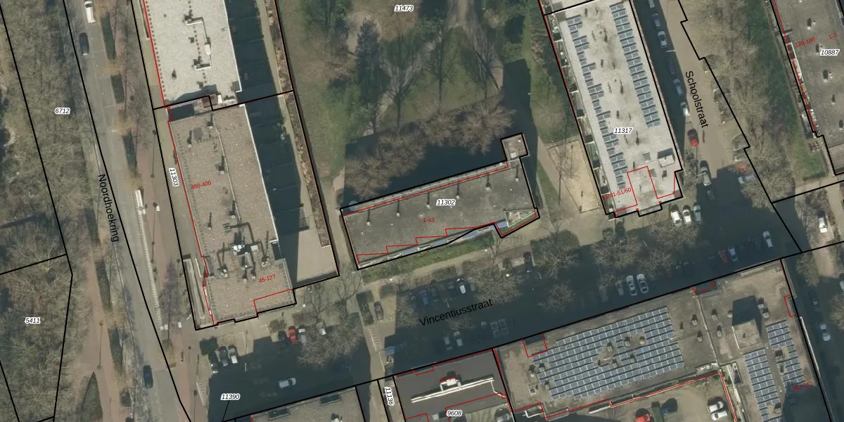 Het perceel waarop Vincentiusstraat 27 staat heeft een oppervlakte van 695 m². Dit is een groot perceel. De perceeloppervlakte wordt geregistreerd door het Kadaster. Gedetailleerde informatie over de maten van dit perceel kunt u vinden in het rapport Kadastrale kaart met maatvoering van Vincentiusstraat 27.