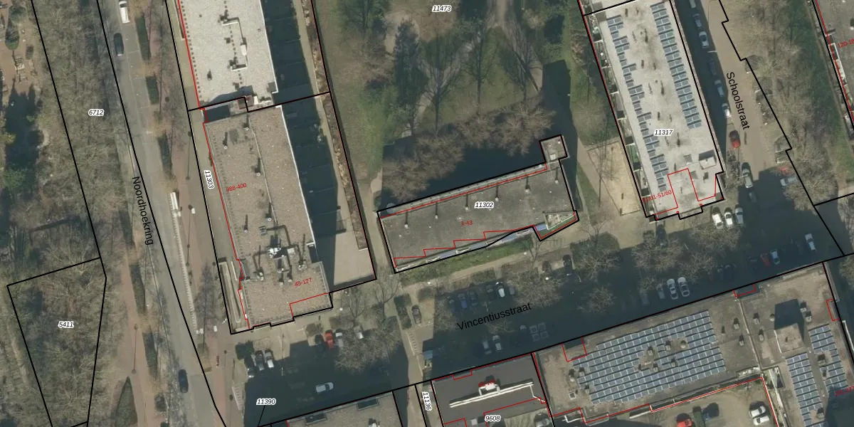 Het perceel waarop Vincentiusstraat 41 staat heeft een oppervlakte van 695 m². Dit is een groot perceel. De perceeloppervlakte wordt geregistreerd door het Kadaster. Gedetailleerde informatie over de maten van dit perceel kunt u vinden in het rapport Kadastrale kaart met maatvoering van Vincentiusstraat 41.