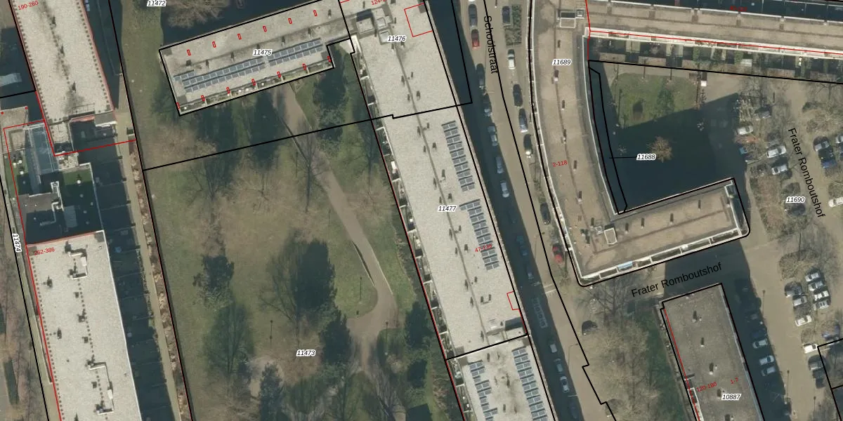 Het perceel waarop Vincentiusstraat 51-52 staat heeft een oppervlakte van 1190 m². Dit is een zeer groot perceel. De perceeloppervlakte wordt geregistreerd door het Kadaster. Gedetailleerde informatie over de maten van dit perceel kunt u vinden in het rapport Kadastrale kaart met maatvoering van Vincentiusstraat 51-52.