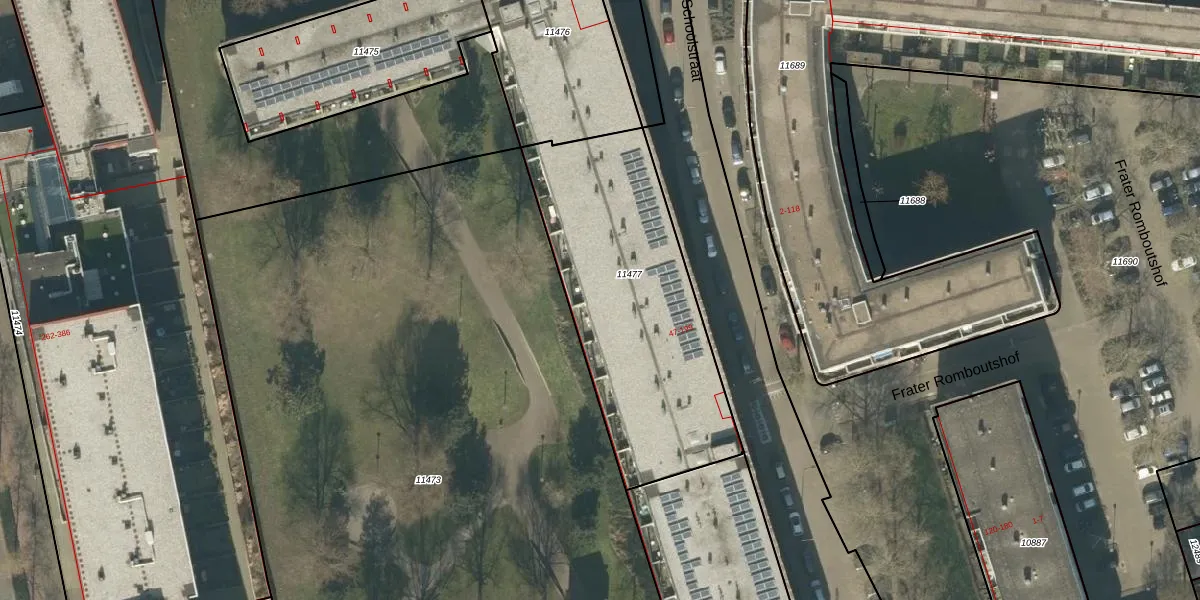 Het perceel waarop Vincentiusstraat 51-53 staat heeft een oppervlakte van 1190 m². Dit is een zeer groot perceel. De perceeloppervlakte wordt geregistreerd door het Kadaster. Gedetailleerde informatie over de maten van dit perceel kunt u vinden in het rapport Kadastrale kaart met maatvoering van Vincentiusstraat 51-53.