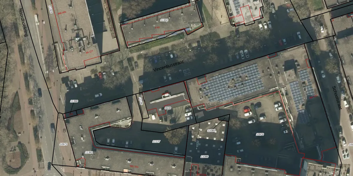 Het perceel waarop Vincentiusstraat 66 staat heeft een oppervlakte van 658 m². Dit is een groot perceel. De perceeloppervlakte wordt geregistreerd door het Kadaster. Gedetailleerde informatie over de maten van dit perceel kunt u vinden in het rapport Kadastrale kaart met maatvoering van Vincentiusstraat 66.