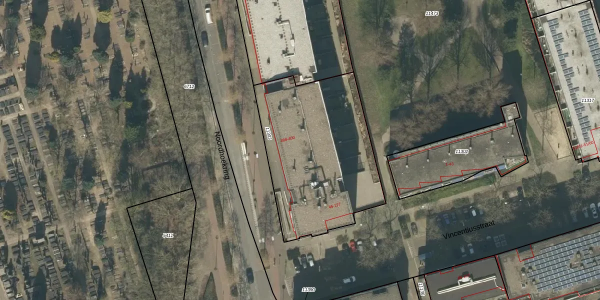 Het perceel waarop Vincentiusstraat 67 staat heeft een oppervlakte van 1730 m². Dit is een zeer groot perceel. De perceeloppervlakte wordt geregistreerd door het Kadaster. Gedetailleerde informatie over de maten van dit perceel kunt u vinden in het rapport Kadastrale kaart met maatvoering van Vincentiusstraat 67.
