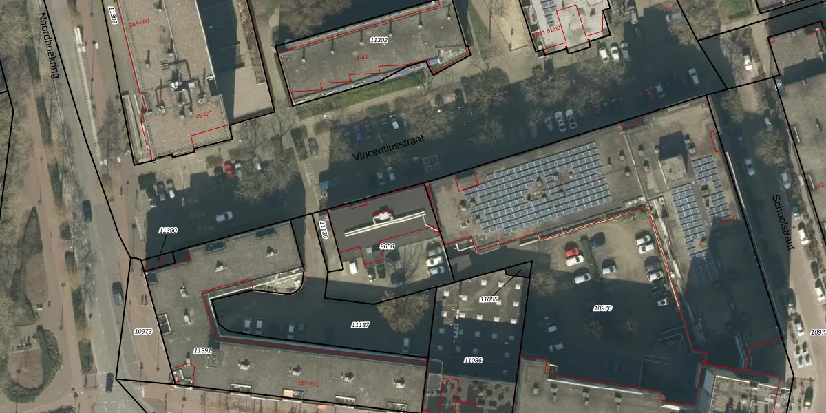 Vincentiusstraat 74 is gelegen op kadastraal perceel TBG01M9608. Deze kadastrale aanduiding is uniek en wordt gebruikt door het Kadaster om eigendomsrechten en andere zakelijke rechten vast te leggen. Het perceel maakt onderdeel uit van de kadastrale gemeente Tilburg.