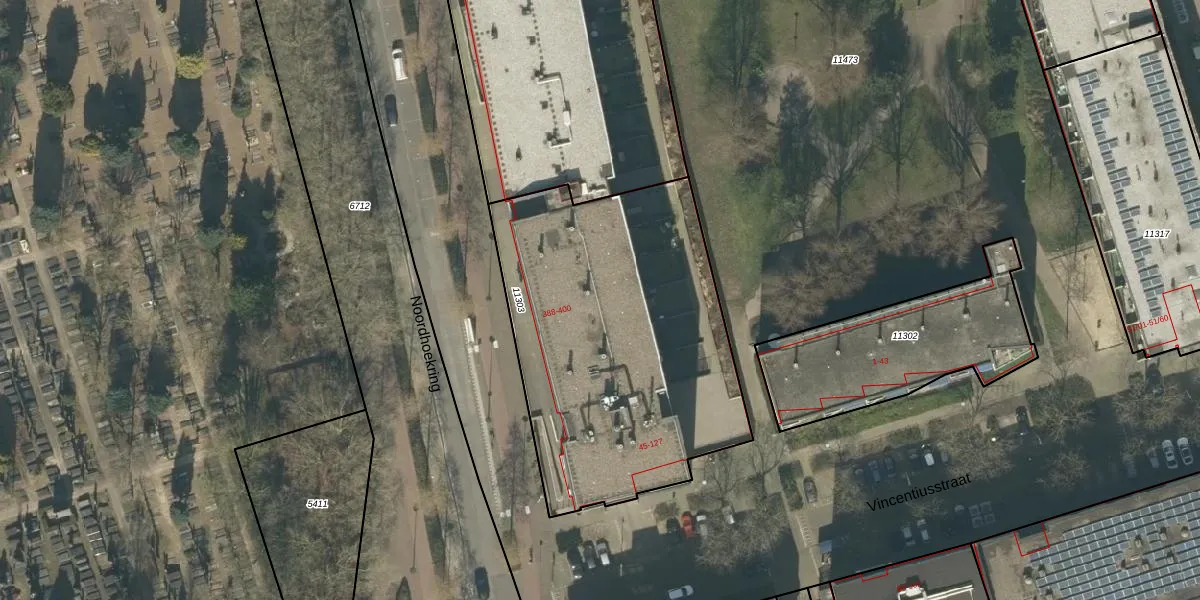 Het perceel waarop Vincentiusstraat 93 staat heeft een oppervlakte van 1730 m². Dit is een zeer groot perceel. De perceeloppervlakte wordt geregistreerd door het Kadaster. Gedetailleerde informatie over de maten van dit perceel kunt u vinden in het rapport Kadastrale kaart met maatvoering van Vincentiusstraat 93.