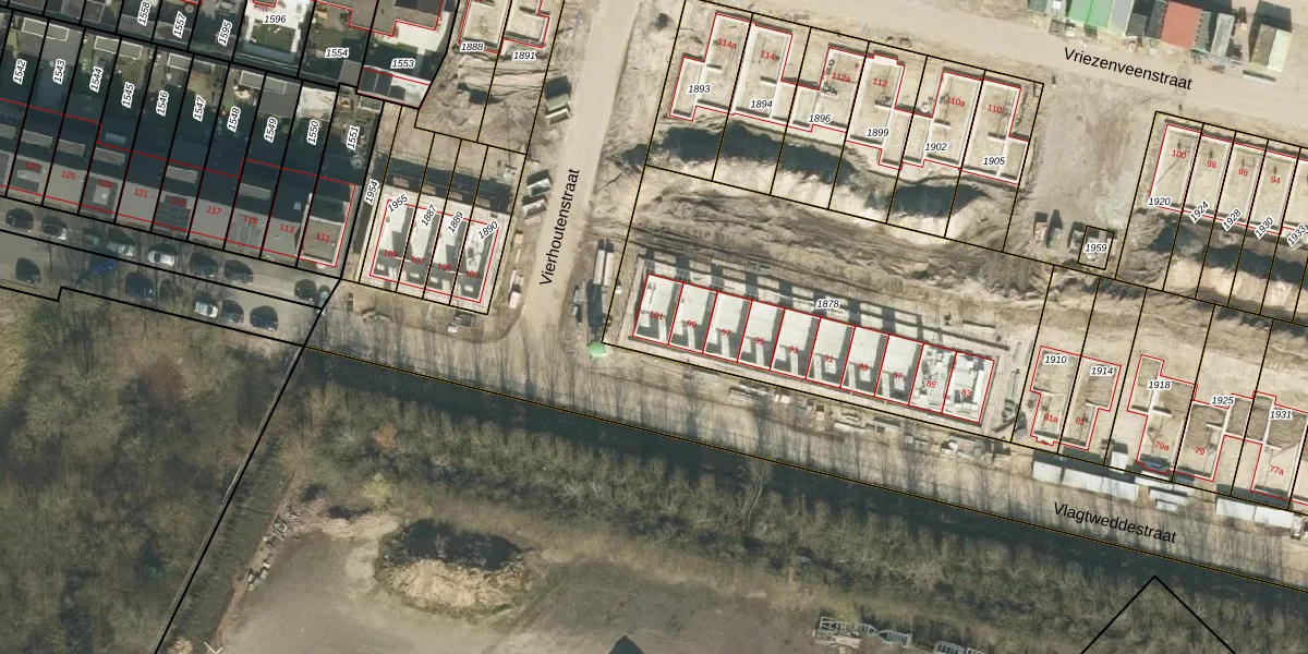 Het perceel waarop Vlagtweddestraat 101 staat heeft een oppervlakte van 1805 m². Dit is een zeer groot perceel. De perceeloppervlakte wordt geregistreerd door het Kadaster. Gedetailleerde informatie over de maten van dit perceel kunt u vinden in het rapport Kadastrale kaart met maatvoering van Vlagtweddestraat 101.