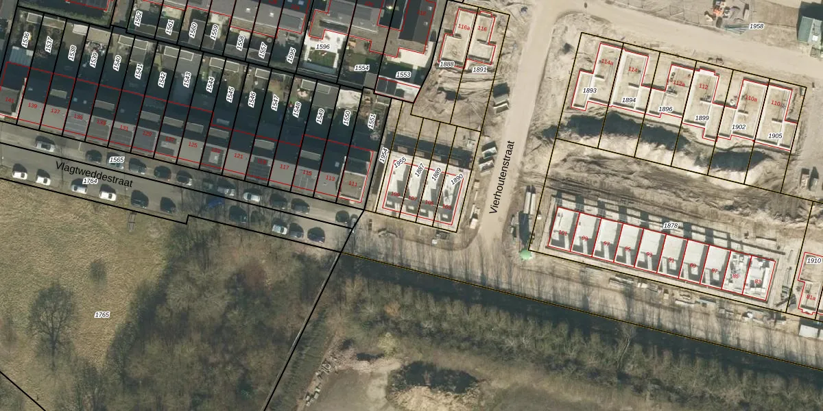 Het perceel waarop Vlagtweddestraat 107 staat heeft een oppervlakte van 106 m². Dit is een middelgroot perceel. De perceeloppervlakte wordt geregistreerd door het Kadaster. Gedetailleerde informatie over de maten van dit perceel kunt u vinden in het rapport Kadastrale kaart met maatvoering van Vlagtweddestraat 107.