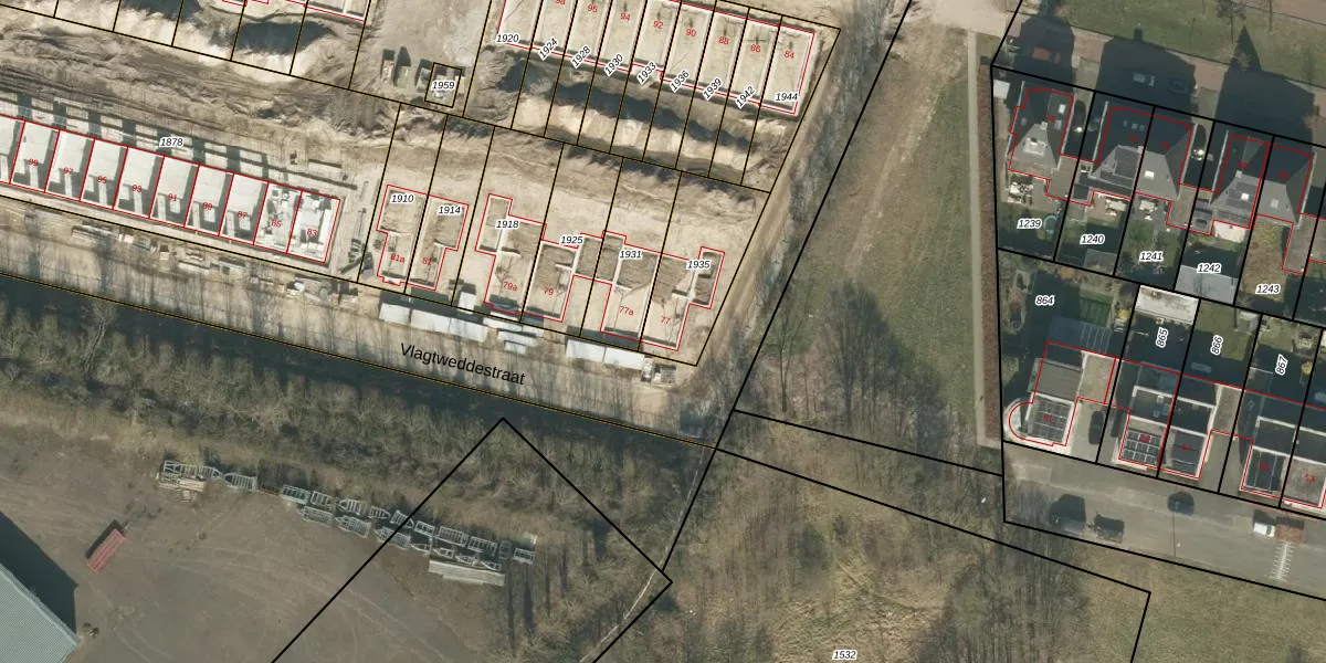 Het perceel waarop Vlagtweddestraat 77 staat heeft een oppervlakte van 321 m². Dit is een groot perceel. De perceeloppervlakte wordt geregistreerd door het Kadaster. Gedetailleerde informatie over de maten van dit perceel kunt u vinden in het rapport Kadastrale kaart met maatvoering van Vlagtweddestraat 77.
