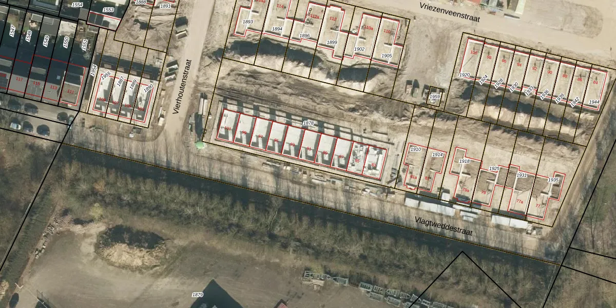 Het perceel waarop Vlagtweddestraat 91 staat heeft een oppervlakte van 1805 m². Dit is een zeer groot perceel. De perceeloppervlakte wordt geregistreerd door het Kadaster. Gedetailleerde informatie over de maten van dit perceel kunt u vinden in het rapport Kadastrale kaart met maatvoering van Vlagtweddestraat 91.