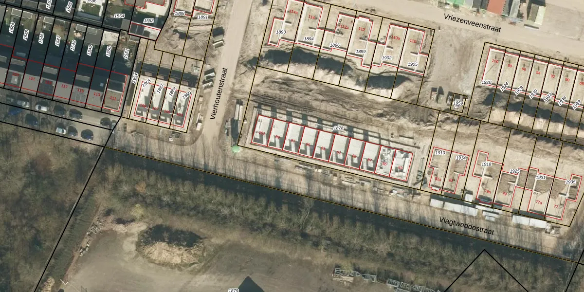 Het perceel waarop Vlagtweddestraat 97 staat heeft een oppervlakte van 1805 m². Dit is een zeer groot perceel. De perceeloppervlakte wordt geregistreerd door het Kadaster. Gedetailleerde informatie over de maten van dit perceel kunt u vinden in het rapport Kadastrale kaart met maatvoering van Vlagtweddestraat 97.