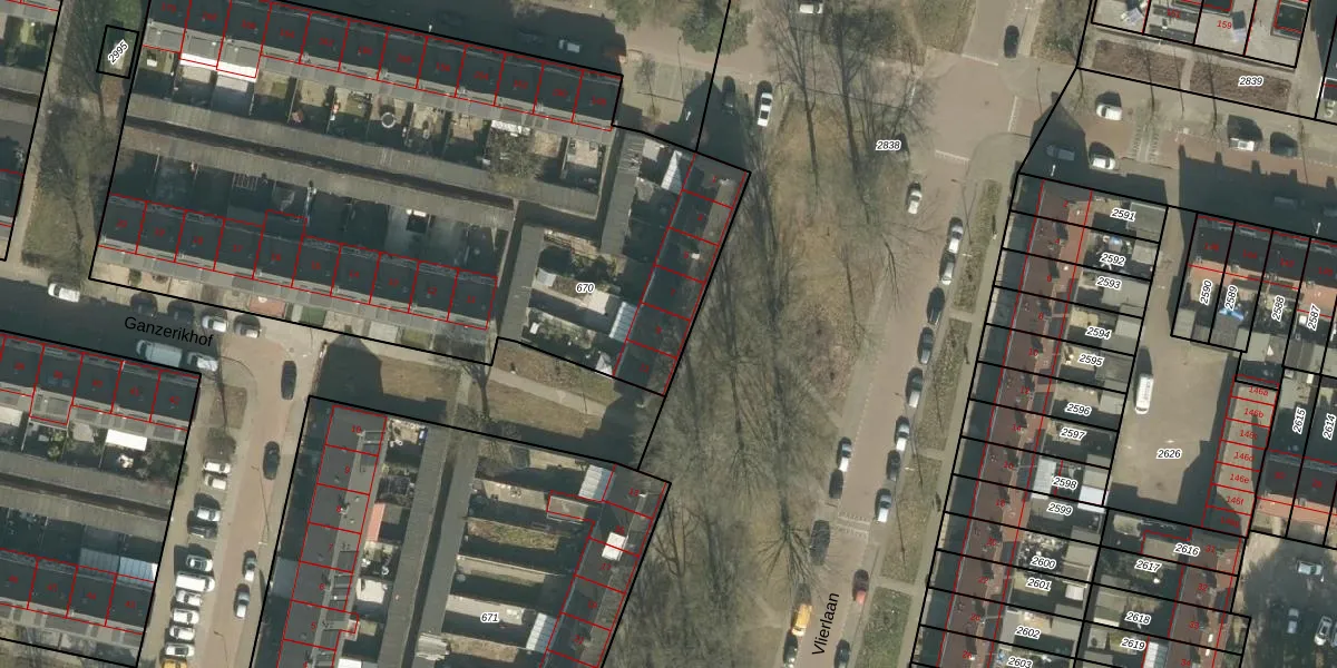 Vlierlaan 9 is gelegen op kadastraal perceel TBG01AD670. Deze kadastrale aanduiding is uniek en wordt gebruikt door het Kadaster om eigendomsrechten en andere zakelijke rechten vast te leggen. Het perceel maakt onderdeel uit van de kadastrale gemeente Tilburg.