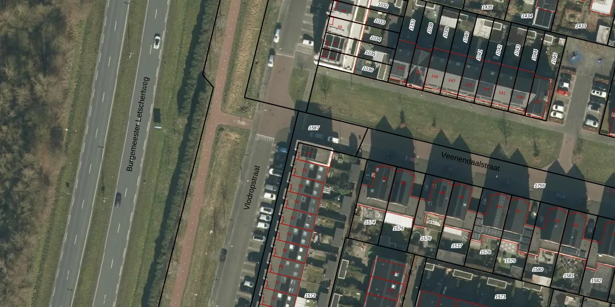 Het perceel waarop Vlodropstraat 54 staat heeft een oppervlakte van 1465 m². Dit is een zeer groot perceel. De perceeloppervlakte wordt geregistreerd door het Kadaster. Gedetailleerde informatie over de maten van dit perceel kunt u vinden in het rapport Kadastrale kaart met maatvoering van Vlodropstraat 54.