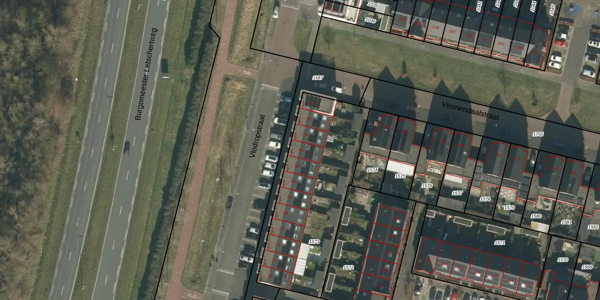 Het perceel waarop Vlodropstraat 60 staat heeft een oppervlakte van 1465 m². Dit is een zeer groot perceel. De perceeloppervlakte wordt geregistreerd door het Kadaster. Gedetailleerde informatie over de maten van dit perceel kunt u vinden in het rapport Kadastrale kaart met maatvoering van Vlodropstraat 60.