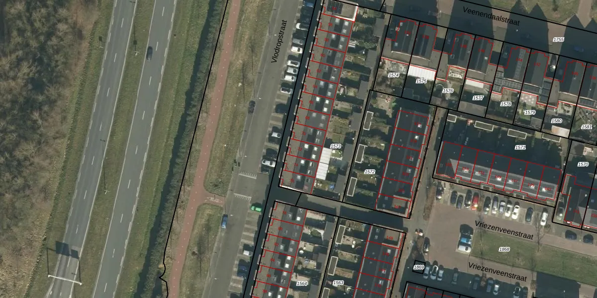 Het perceel waarop Vlodropstraat 72 staat heeft een oppervlakte van 1465 m². Dit is een zeer groot perceel. De perceeloppervlakte wordt geregistreerd door het Kadaster. Gedetailleerde informatie over de maten van dit perceel kunt u vinden in het rapport Kadastrale kaart met maatvoering van Vlodropstraat 72.
