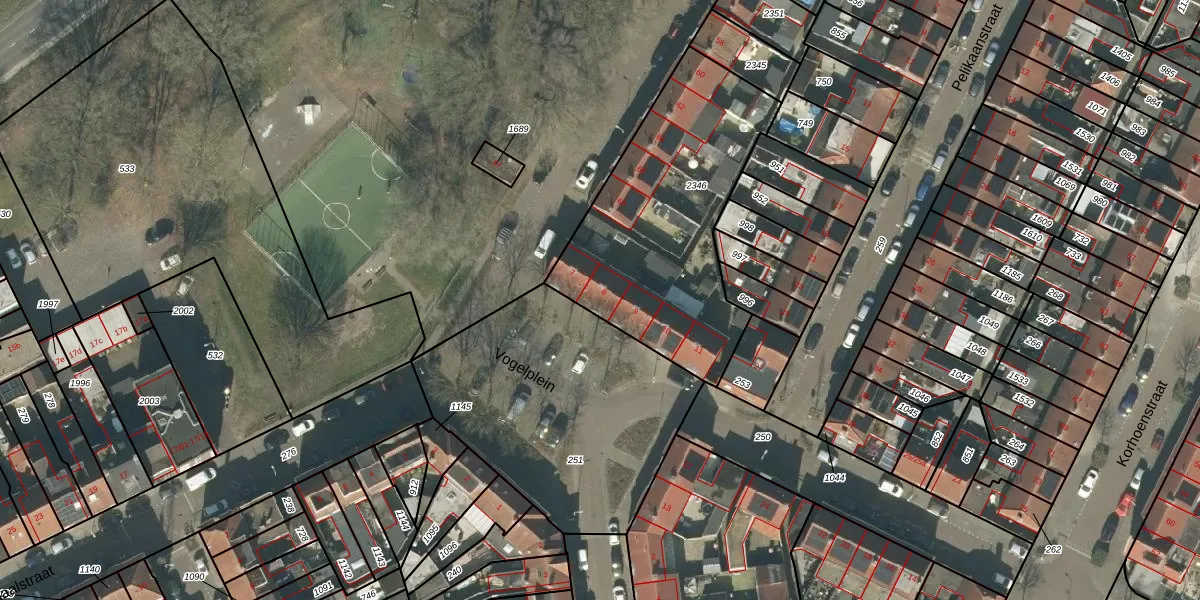 Het perceel waarop Vogelplein 8 staat heeft een oppervlakte van 1090 m². Dit is een zeer groot perceel. De perceeloppervlakte wordt geregistreerd door het Kadaster. Gedetailleerde informatie over de maten van dit perceel kunt u vinden in het rapport Kadastrale kaart met maatvoering van Vogelplein 8.