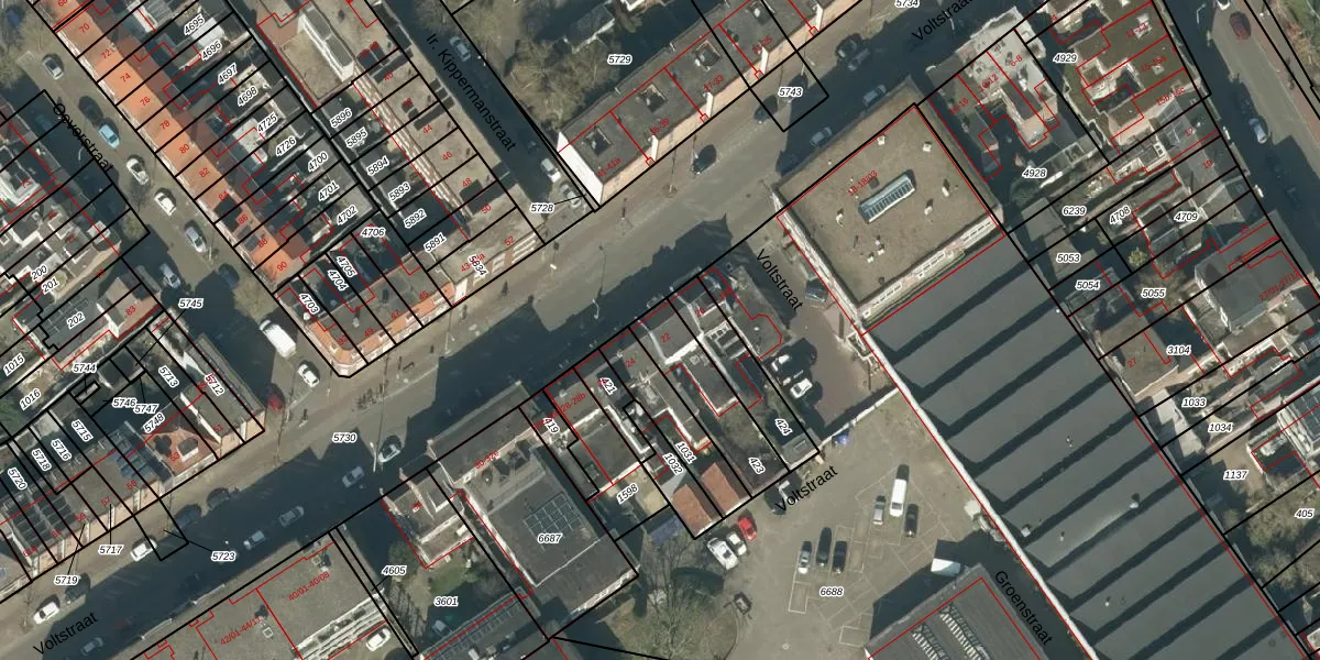 Het perceel waarop Voltstraat 22 staat heeft een oppervlakte van 227 m². Dit is een middelgroot perceel. De perceeloppervlakte wordt geregistreerd door het Kadaster. Gedetailleerde informatie over de maten van dit perceel kunt u vinden in het rapport Kadastrale kaart met maatvoering van Voltstraat 22.