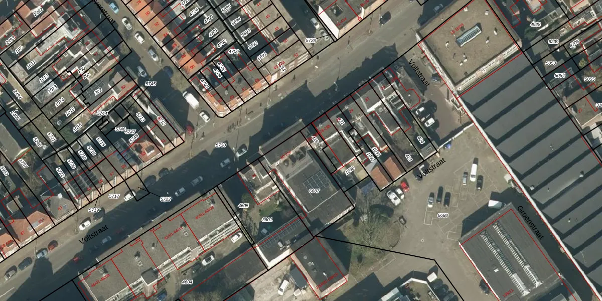 Voltstraat 30 is gelegen op kadastraal perceel TBG01R6687. Deze kadastrale aanduiding is uniek en wordt gebruikt door het Kadaster om eigendomsrechten en andere zakelijke rechten vast te leggen. Het perceel maakt onderdeel uit van de kadastrale gemeente Tilburg.