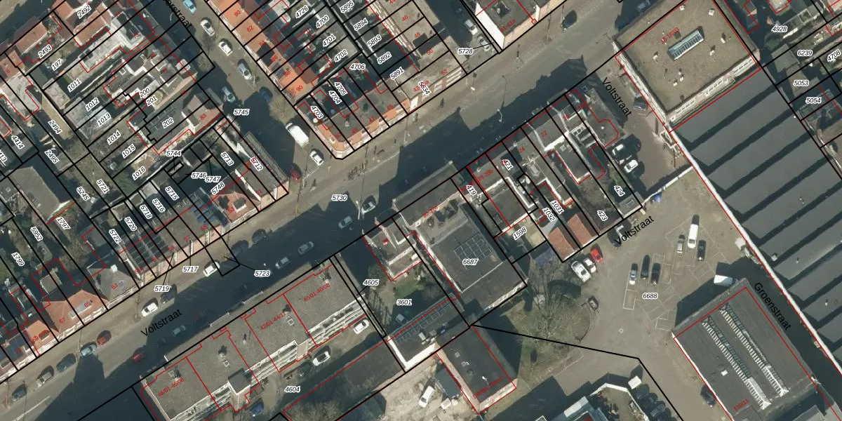 Voltstraat 32 is gelegen op kadastraal perceel TBG01R6687. Deze kadastrale aanduiding is uniek en wordt gebruikt door het Kadaster om eigendomsrechten en andere zakelijke rechten vast te leggen. Het perceel maakt onderdeel uit van de kadastrale gemeente Tilburg.