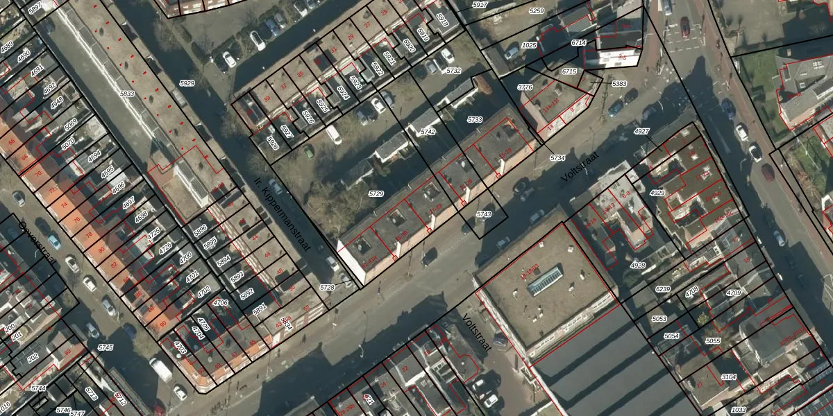 Voltstraat 33 is gelegen op kadastraal perceel TBG01R5729. Deze kadastrale aanduiding is uniek en wordt gebruikt door het Kadaster om eigendomsrechten en andere zakelijke rechten vast te leggen. Het perceel maakt onderdeel uit van de kadastrale gemeente Tilburg.