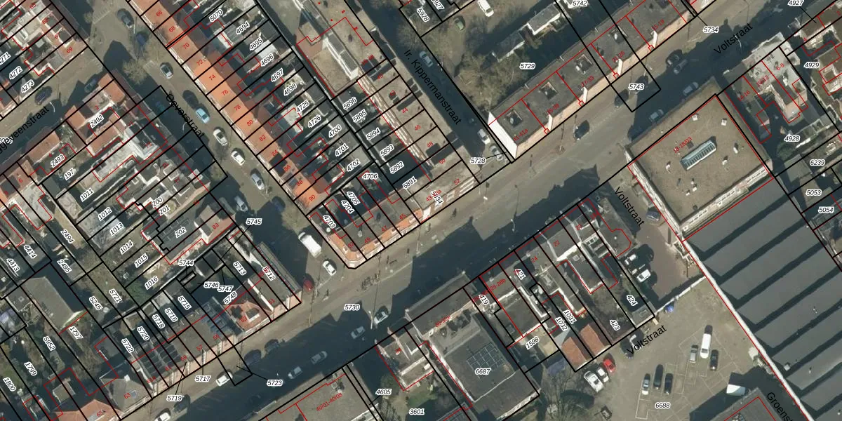 Voltstraat 43-a is gelegen op kadastraal perceel TBG01R5834. Deze kadastrale aanduiding is uniek en wordt gebruikt door het Kadaster om eigendomsrechten en andere zakelijke rechten vast te leggen. Het perceel maakt onderdeel uit van de kadastrale gemeente Tilburg.
