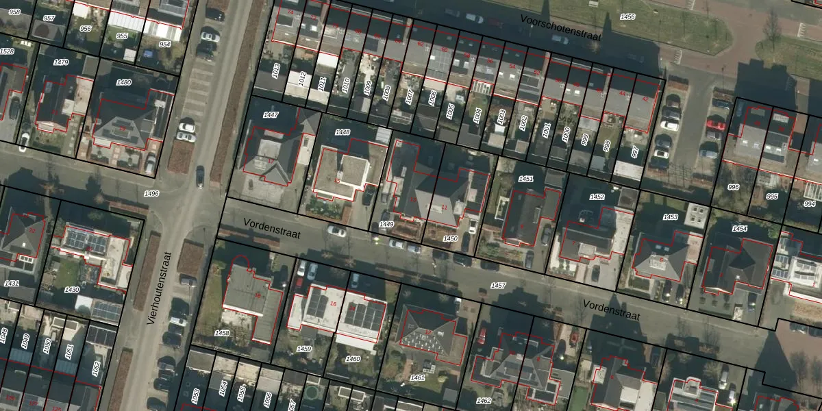 Vordenstraat 13 is gelegen op kadastraal perceel TBG01AH1449. Deze kadastrale aanduiding is uniek en wordt gebruikt door het Kadaster om eigendomsrechten en andere zakelijke rechten vast te leggen. Het perceel maakt onderdeel uit van de kadastrale gemeente Tilburg.