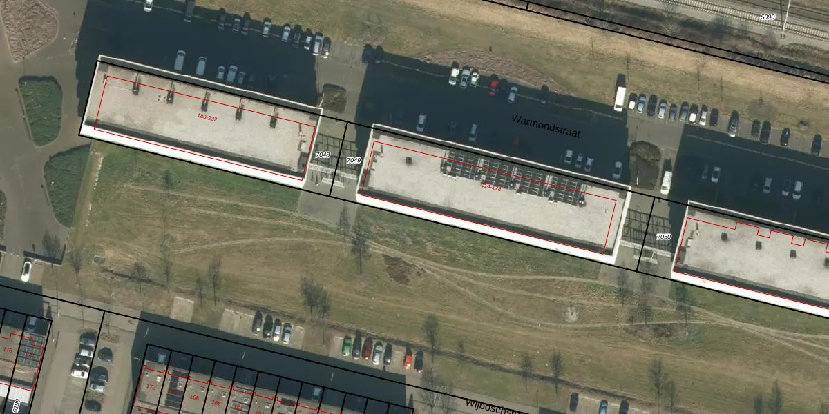 Het perceel waarop Warmondstraat 166 staat heeft een oppervlakte van 1411 m². Dit is een zeer groot perceel. De perceeloppervlakte wordt geregistreerd door het Kadaster. Gedetailleerde informatie over de maten van dit perceel kunt u vinden in het rapport Kadastrale kaart met maatvoering van Warmondstraat 166.