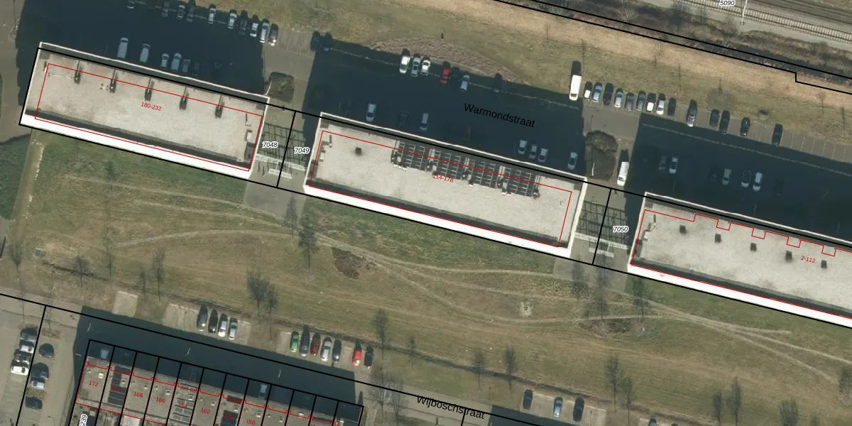 Warmondstraat 172 is gelegen op kadastraal perceel TBG01F7049. Deze kadastrale aanduiding is uniek en wordt gebruikt door het Kadaster om eigendomsrechten en andere zakelijke rechten vast te leggen. Het perceel maakt onderdeel uit van de kadastrale gemeente Tilburg.