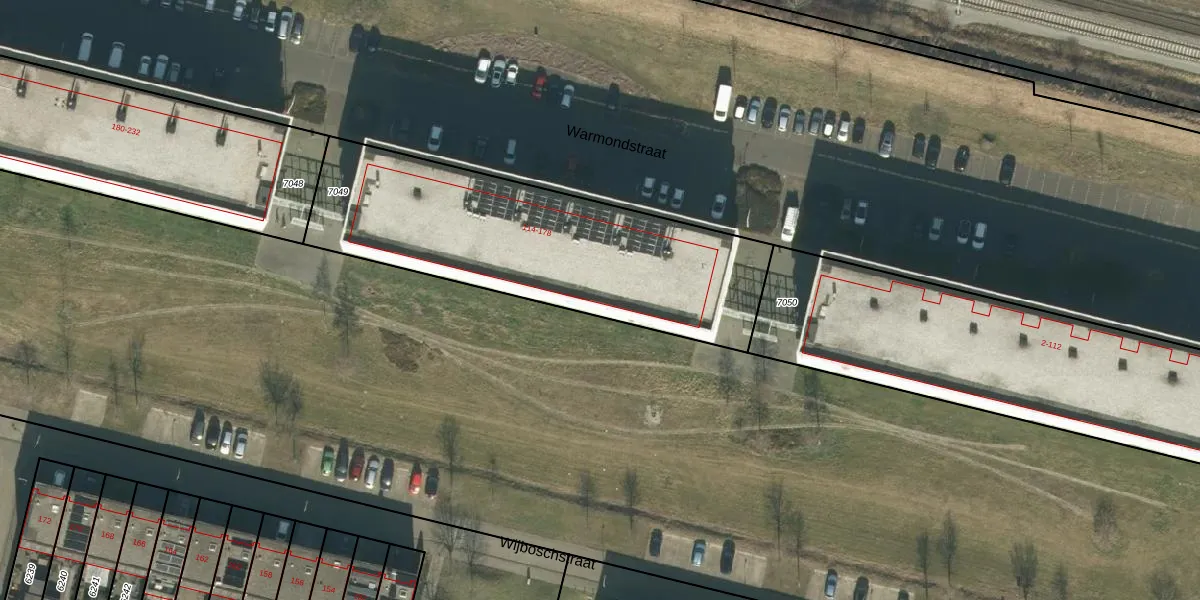 Warmondstraat 178 is gelegen op kadastraal perceel TBG01F7049. Deze kadastrale aanduiding is uniek en wordt gebruikt door het Kadaster om eigendomsrechten en andere zakelijke rechten vast te leggen. Het perceel maakt onderdeel uit van de kadastrale gemeente Tilburg.