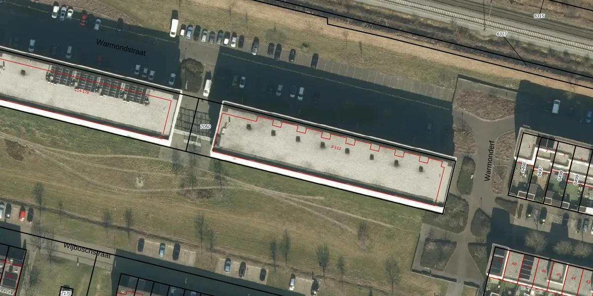 Warmondstraat 42 is gelegen op kadastraal perceel TBG01F7050. Deze kadastrale aanduiding is uniek en wordt gebruikt door het Kadaster om eigendomsrechten en andere zakelijke rechten vast te leggen. Het perceel maakt onderdeel uit van de kadastrale gemeente Tilburg.