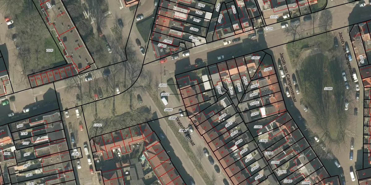 Het perceel waarop Waterhoefstraat 34 staat heeft een oppervlakte van 89 m². Dit is een klein perceel. De perceeloppervlakte wordt geregistreerd door het Kadaster. Gedetailleerde informatie over de maten van dit perceel kunt u vinden in het rapport Kadastrale kaart met maatvoering van Waterhoefstraat 34.