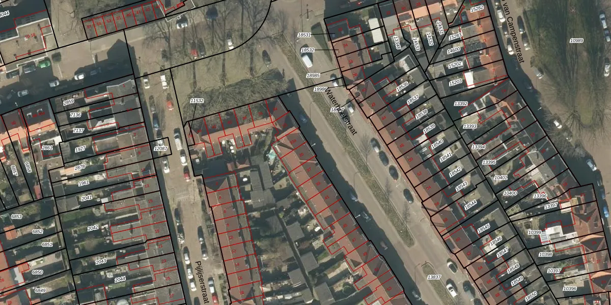 Het perceel waarop Waterhoefstraat 35 staat heeft een oppervlakte van 1,0 ha. Dit is een zeer groot perceel. De perceeloppervlakte wordt geregistreerd door het Kadaster. Gedetailleerde informatie over de maten van dit perceel kunt u vinden in het rapport Kadastrale kaart met maatvoering van Waterhoefstraat 35.