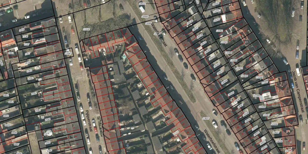 Het perceel waarop Waterhoefstraat 41 staat heeft een oppervlakte van 1,0 ha. Dit is een zeer groot perceel. De perceeloppervlakte wordt geregistreerd door het Kadaster. Gedetailleerde informatie over de maten van dit perceel kunt u vinden in het rapport Kadastrale kaart met maatvoering van Waterhoefstraat 41.