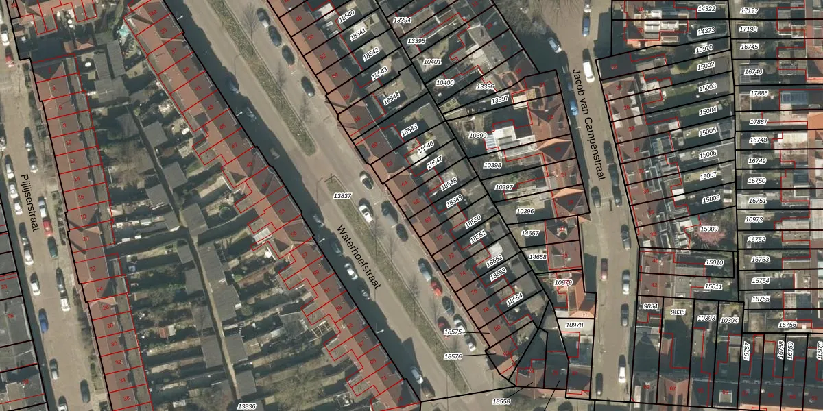 Het perceel waarop Waterhoefstraat 66 staat heeft een oppervlakte van 108 m². Dit is een middelgroot perceel. De perceeloppervlakte wordt geregistreerd door het Kadaster. Gedetailleerde informatie over de maten van dit perceel kunt u vinden in het rapport Kadastrale kaart met maatvoering van Waterhoefstraat 66.