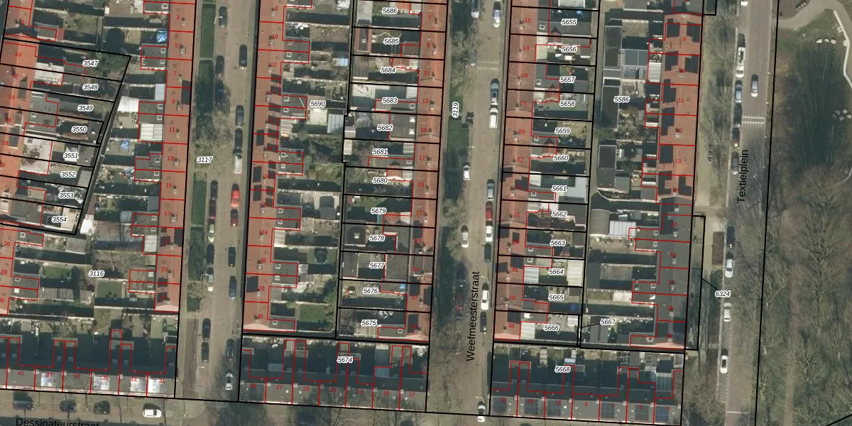 Het perceel waarop Weefmeesterstraat 21 staat heeft een oppervlakte van 148 m². Dit is een middelgroot perceel. De perceeloppervlakte wordt geregistreerd door het Kadaster. Gedetailleerde informatie over de maten van dit perceel kunt u vinden in het rapport Kadastrale kaart met maatvoering van Weefmeesterstraat 21.