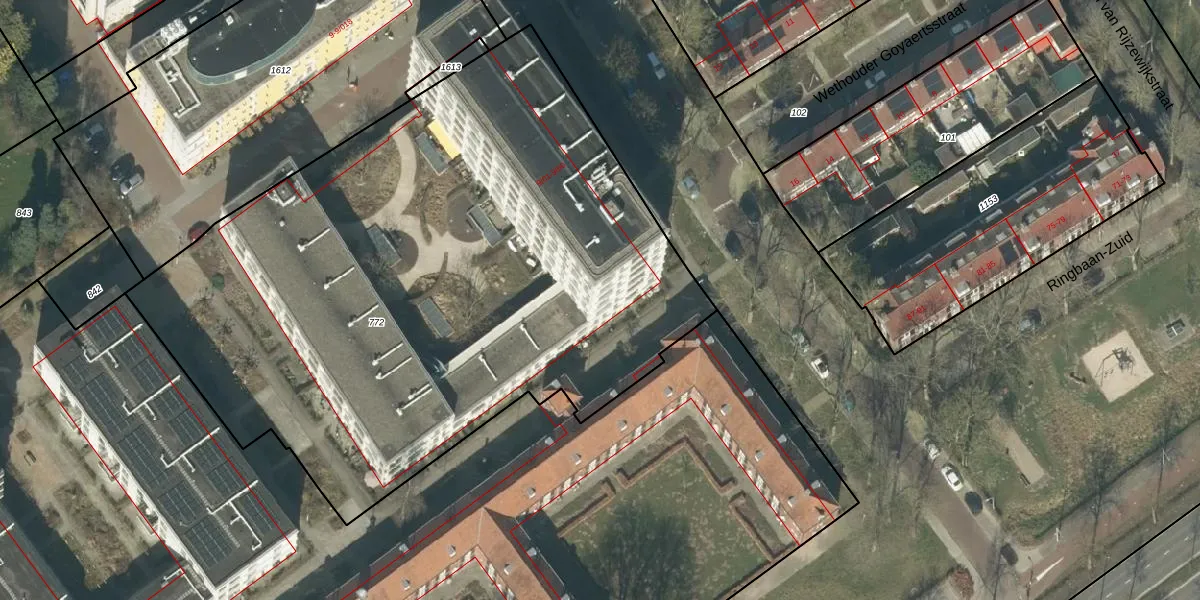 Het perceel waarop Wethouderslaan 9-18 staat heeft een oppervlakte van 4252 m². Dit is een zeer groot perceel. De perceeloppervlakte wordt geregistreerd door het Kadaster. Gedetailleerde informatie over de maten van dit perceel kunt u vinden in het rapport Kadastrale kaart met maatvoering van Wethouderslaan 9-18.