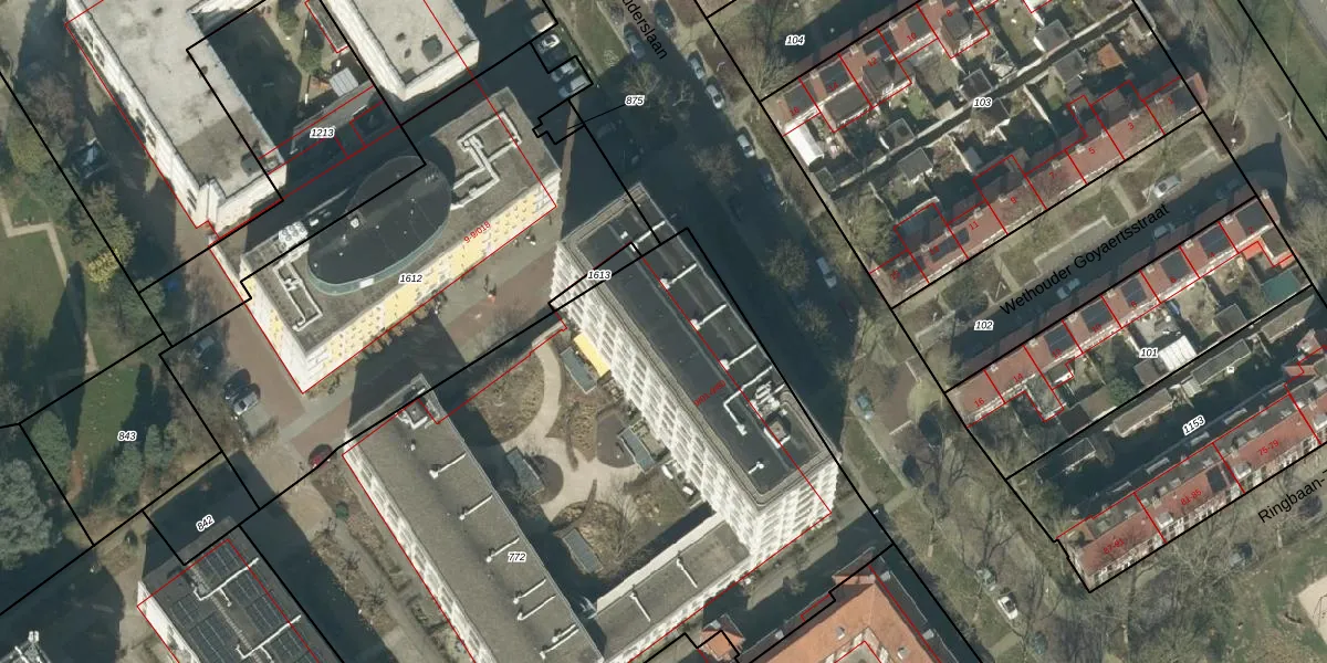 Het perceel waarop Wethouderslaan 9-35 staat heeft een oppervlakte van 4252 m². Dit is een zeer groot perceel. De perceeloppervlakte wordt geregistreerd door het Kadaster. Gedetailleerde informatie over de maten van dit perceel kunt u vinden in het rapport Kadastrale kaart met maatvoering van Wethouderslaan 9-35.
