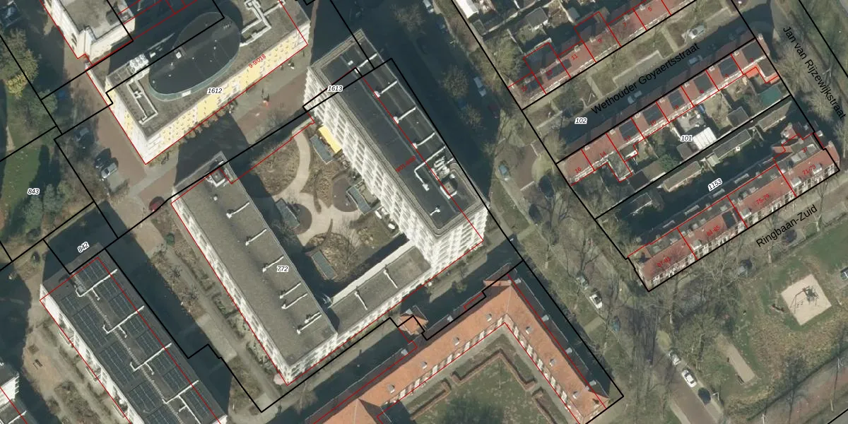 Het perceel waarop Wethouderslaan 9-44 staat heeft een oppervlakte van 4252 m². Dit is een zeer groot perceel. De perceeloppervlakte wordt geregistreerd door het Kadaster. Gedetailleerde informatie over de maten van dit perceel kunt u vinden in het rapport Kadastrale kaart met maatvoering van Wethouderslaan 9-44.