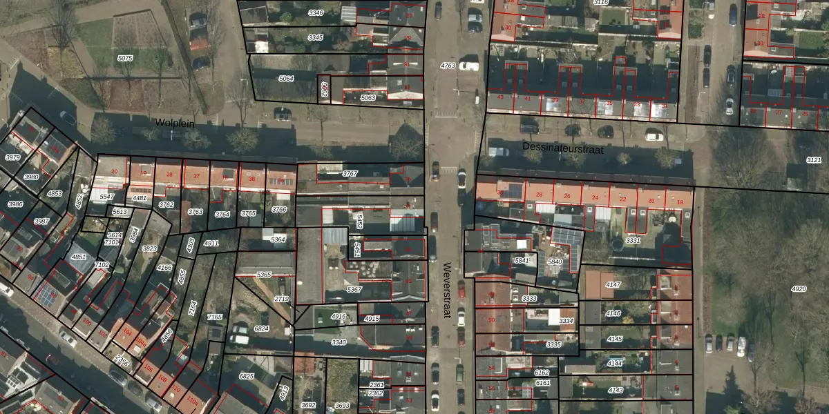 Het perceel waarop Weverstraat 37 staat heeft een oppervlakte van 283 m². Dit is een middelgroot perceel. De perceeloppervlakte wordt geregistreerd door het Kadaster. Gedetailleerde informatie over de maten van dit perceel kunt u vinden in het rapport Kadastrale kaart met maatvoering van Weverstraat 37.