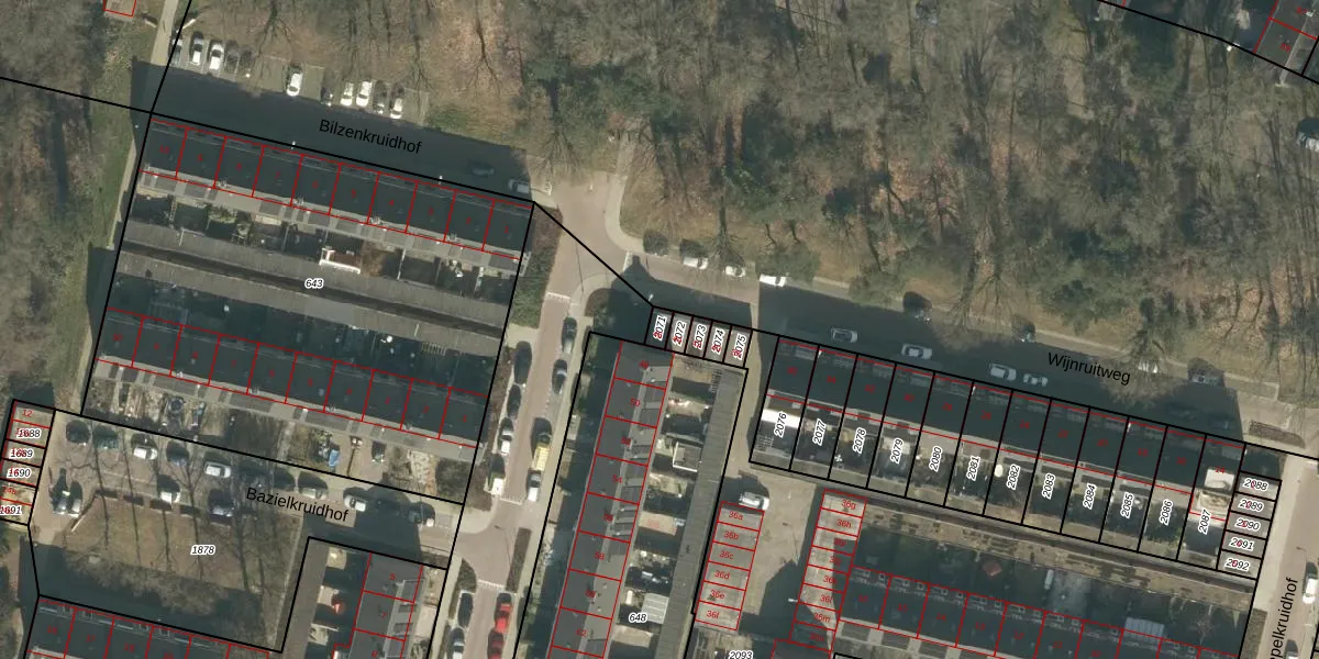 Wijnruitweg 46 is gelegen op kadastraal perceel TBG01AD2071. Deze kadastrale aanduiding is uniek en wordt gebruikt door het Kadaster om eigendomsrechten en andere zakelijke rechten vast te leggen. Het perceel maakt onderdeel uit van de kadastrale gemeente Tilburg.