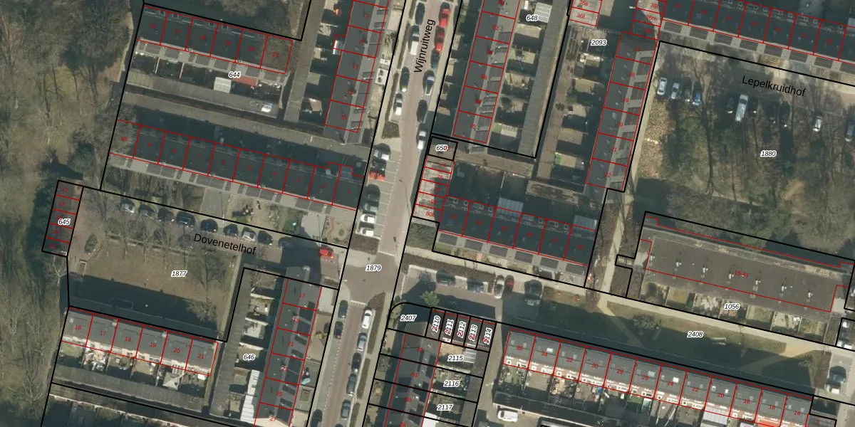 Het perceel waarop Wijnruitweg 80-a staat heeft een oppervlakte van 3989 m². Dit is een zeer groot perceel. De perceeloppervlakte wordt geregistreerd door het Kadaster. Gedetailleerde informatie over de maten van dit perceel kunt u vinden in het rapport Kadastrale kaart met maatvoering van Wijnruitweg 80-a.