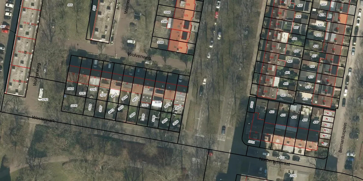 Wolvenweg 1 is gelegen op kadastraal perceel TBG01AC3426. Deze kadastrale aanduiding is uniek en wordt gebruikt door het Kadaster om eigendomsrechten en andere zakelijke rechten vast te leggen. Het perceel maakt onderdeel uit van de kadastrale gemeente Tilburg.