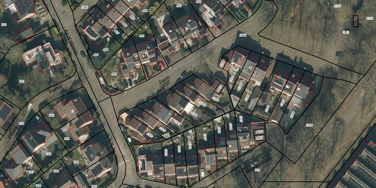 Het perceel waarop Zoom 9 staat heeft een oppervlakte van 174 m². Dit is een middelgroot perceel. De perceeloppervlakte wordt geregistreerd door het Kadaster. Gedetailleerde informatie over de maten van dit perceel kunt u vinden in het rapport Kadastrale kaart met maatvoering van Zoom 9.