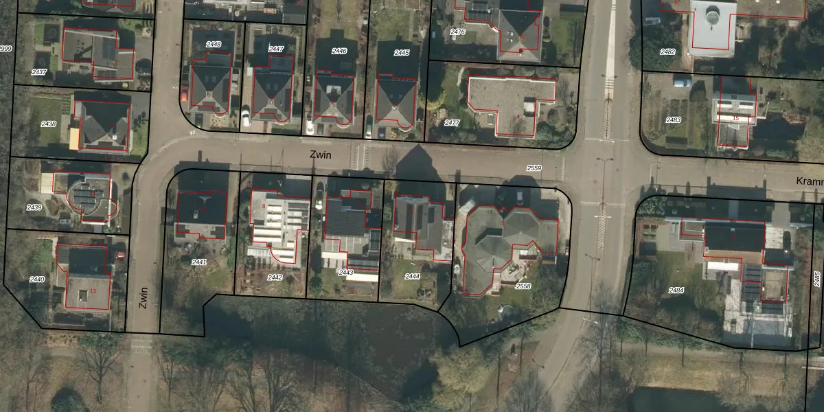 Het perceel waarop Zwin 4 staat heeft een oppervlakte van 525 m². Dit is een groot perceel. De perceeloppervlakte wordt geregistreerd door het Kadaster. Gedetailleerde informatie over de maten van dit perceel kunt u vinden in het rapport Kadastrale kaart met maatvoering van Zwin 4.