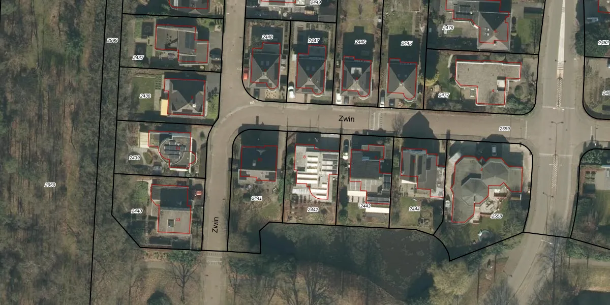 Zwin 8 is gelegen op kadastraal perceel TBG01AA2442. Deze kadastrale aanduiding is uniek en wordt gebruikt door het Kadaster om eigendomsrechten en andere zakelijke rechten vast te leggen. Het perceel maakt onderdeel uit van de kadastrale gemeente Tilburg.